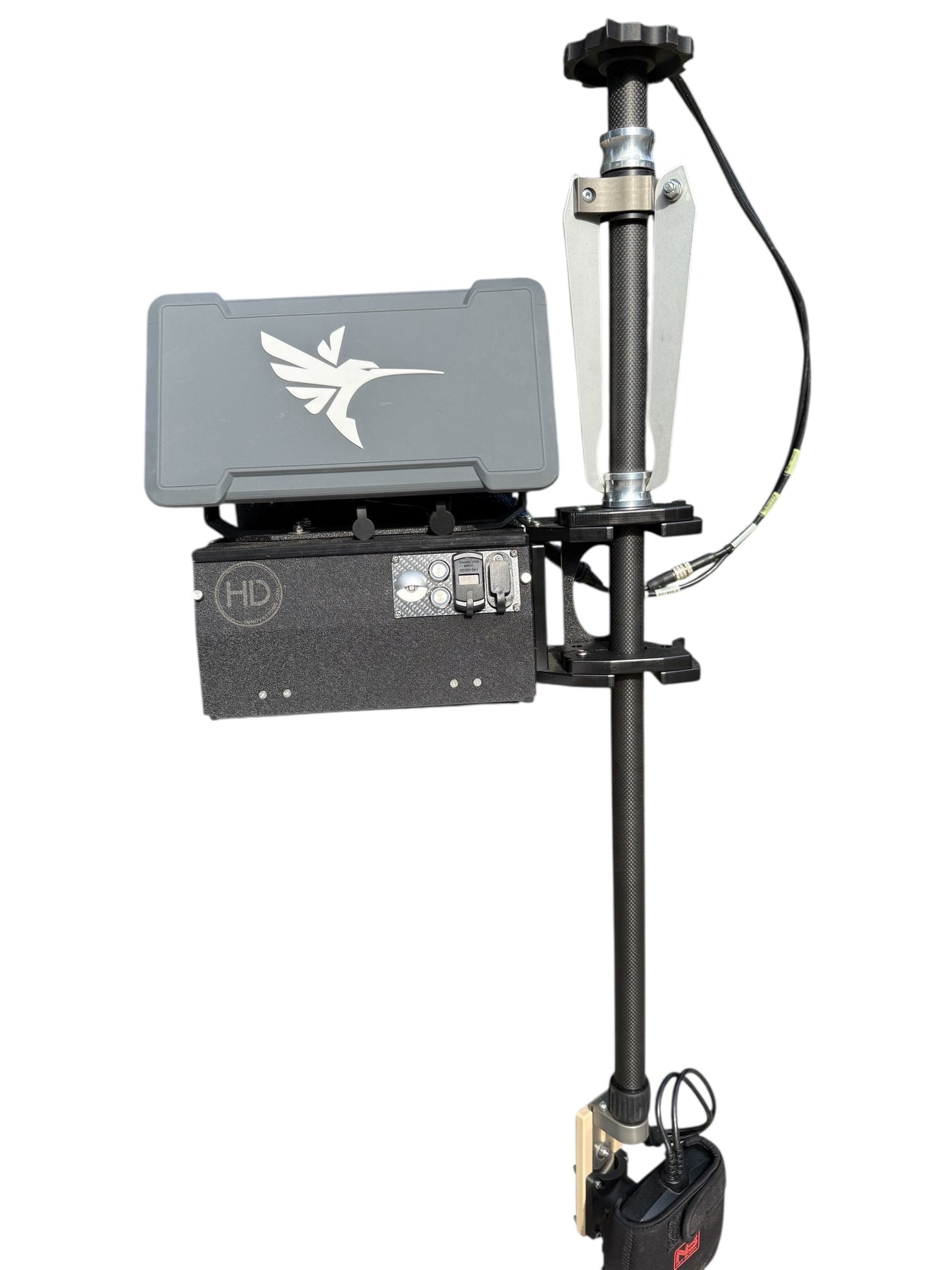 The Sidewinder uses the internal frame hole to act as a handhold to allow horizontal carrying of the system while the transducer pole is still attached and ready for deployment.