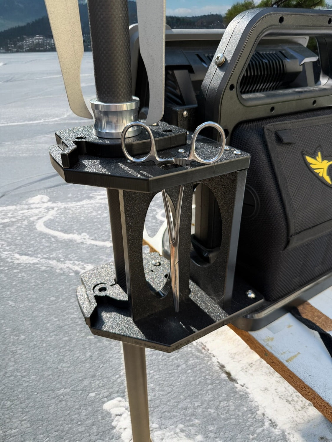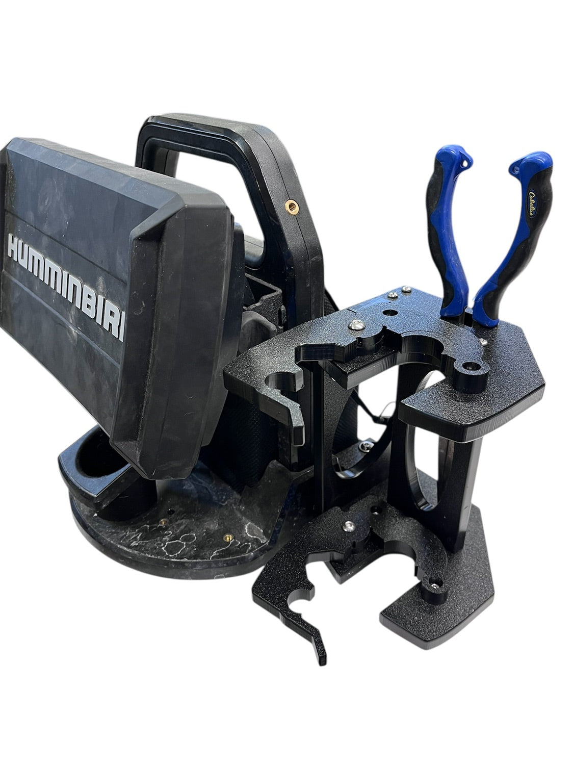 The unique turret keeps your transducer pole securely attached to the ice shuttle in a vertical orientation for easy one-handed removal and deployment. The turret clamps are universal, accommodating many pole diameters and easily open with no tools to remove the transducer pole as needed.