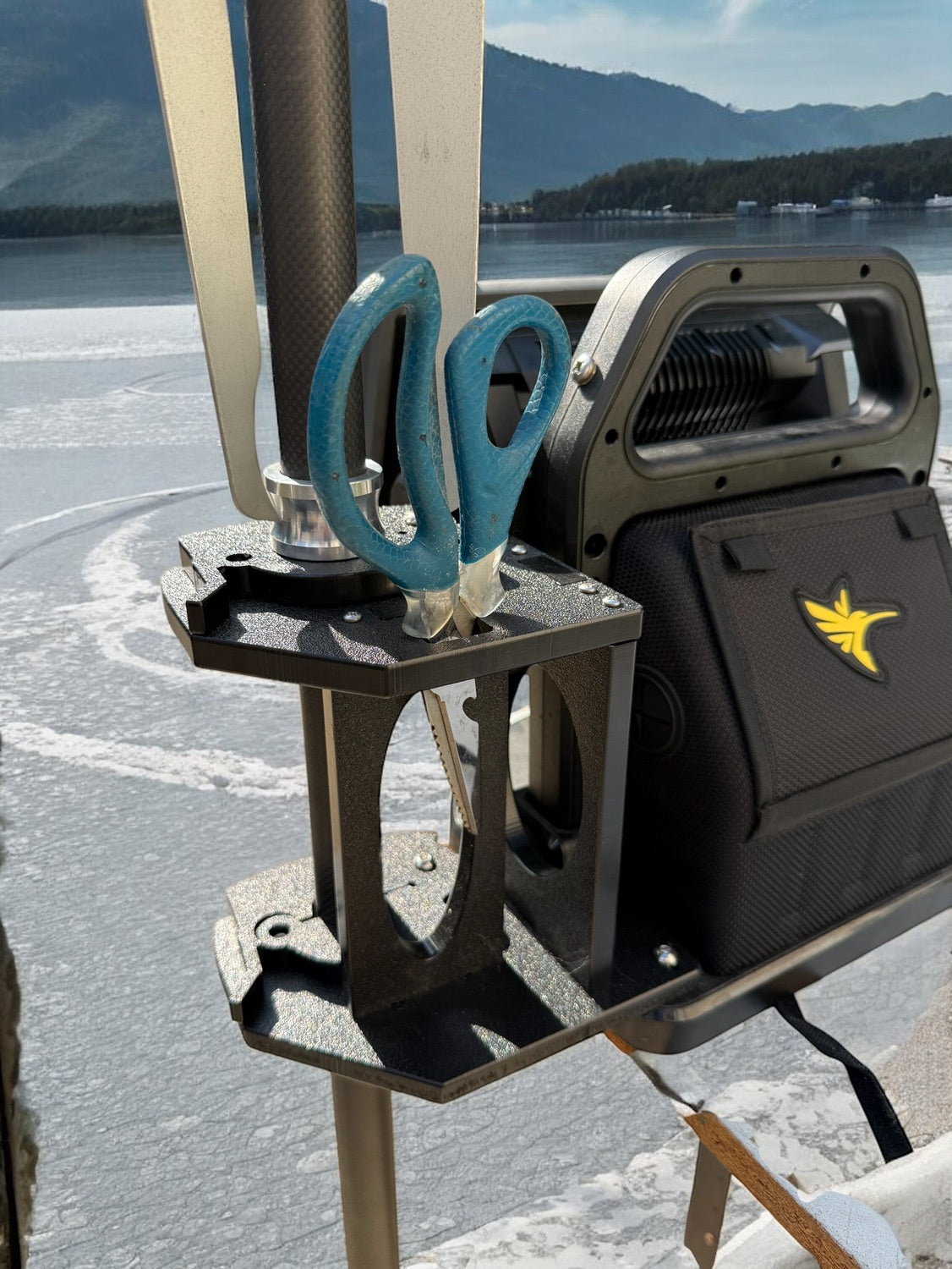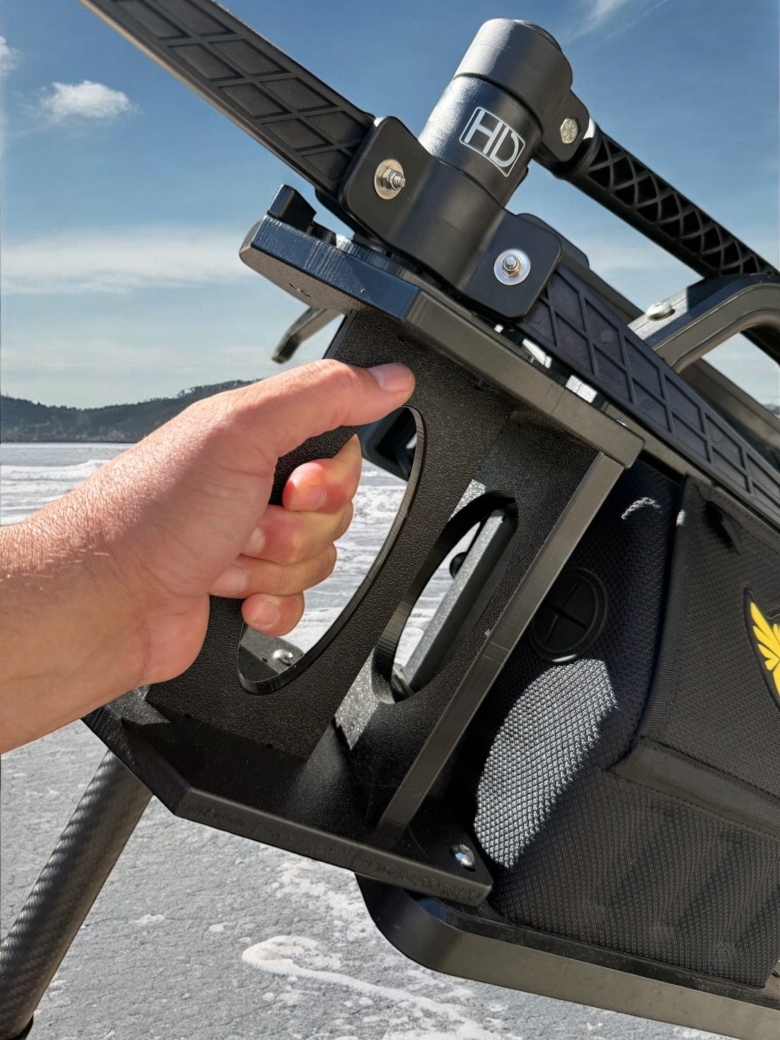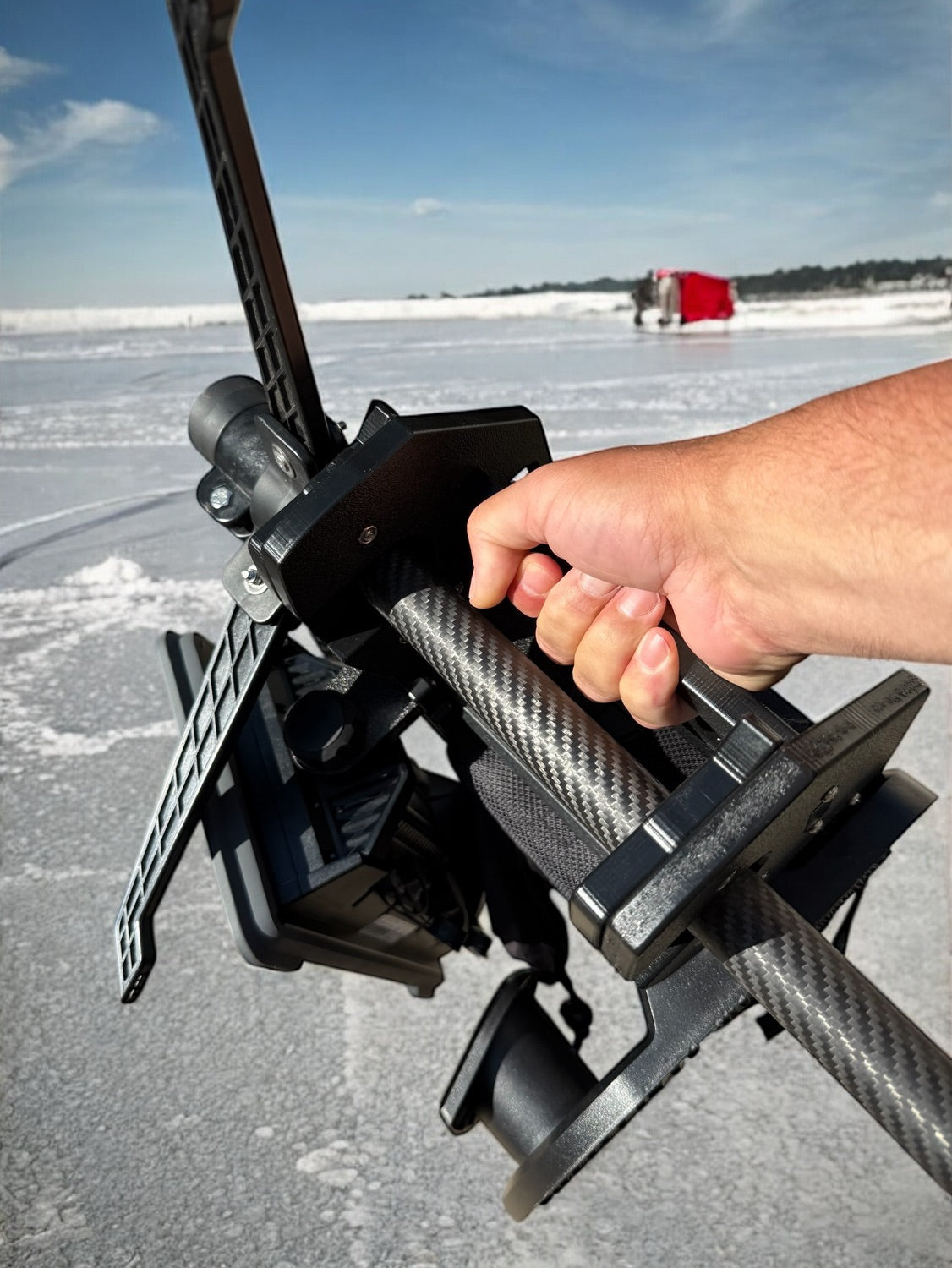 The Shuttle Buddy and Sidewinder are unique in solving the problem of too much gear and not enough hands. By uniting the transducer pole to your shuttle, we have freed up your hands to be more agile and efficient on the ice.