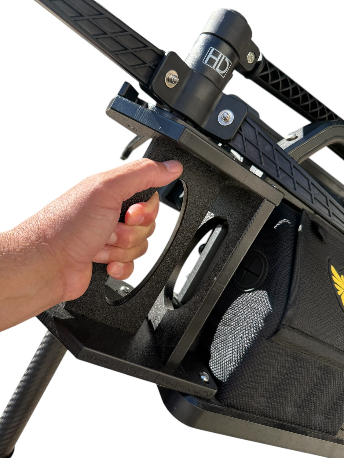 The Sidewinder uses the internal frame hole to act as a handhold to allow horizontal carrying of the system while the transducer pole is still attached and ready for deployment.