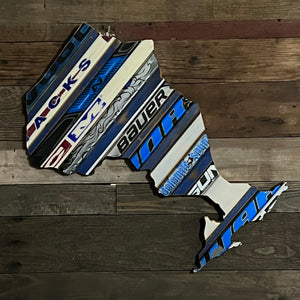These signs can be custom made in different states and in favorite team-inspired colors. Makes a great gift for the hockey-lover in your life and can be even more personalized with their own sticks, custom engraving of their name, number or team logo.
