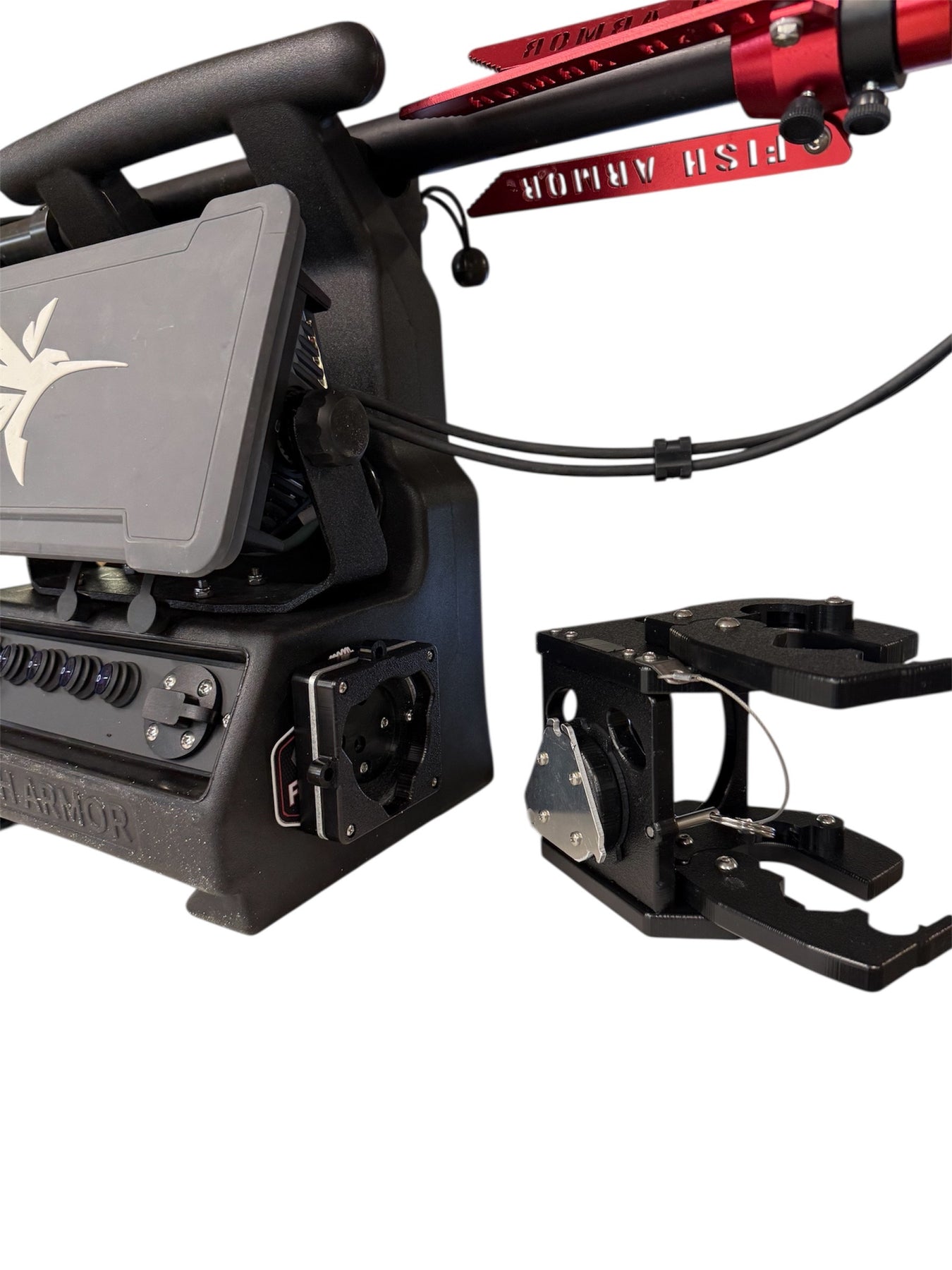 Attach the Sidewinder with Quick Draw swivel mount to your existing Fish Armor ice shuttle system, and the transducer pole can be locked into the unique universal turret, handling everything as one unit.
